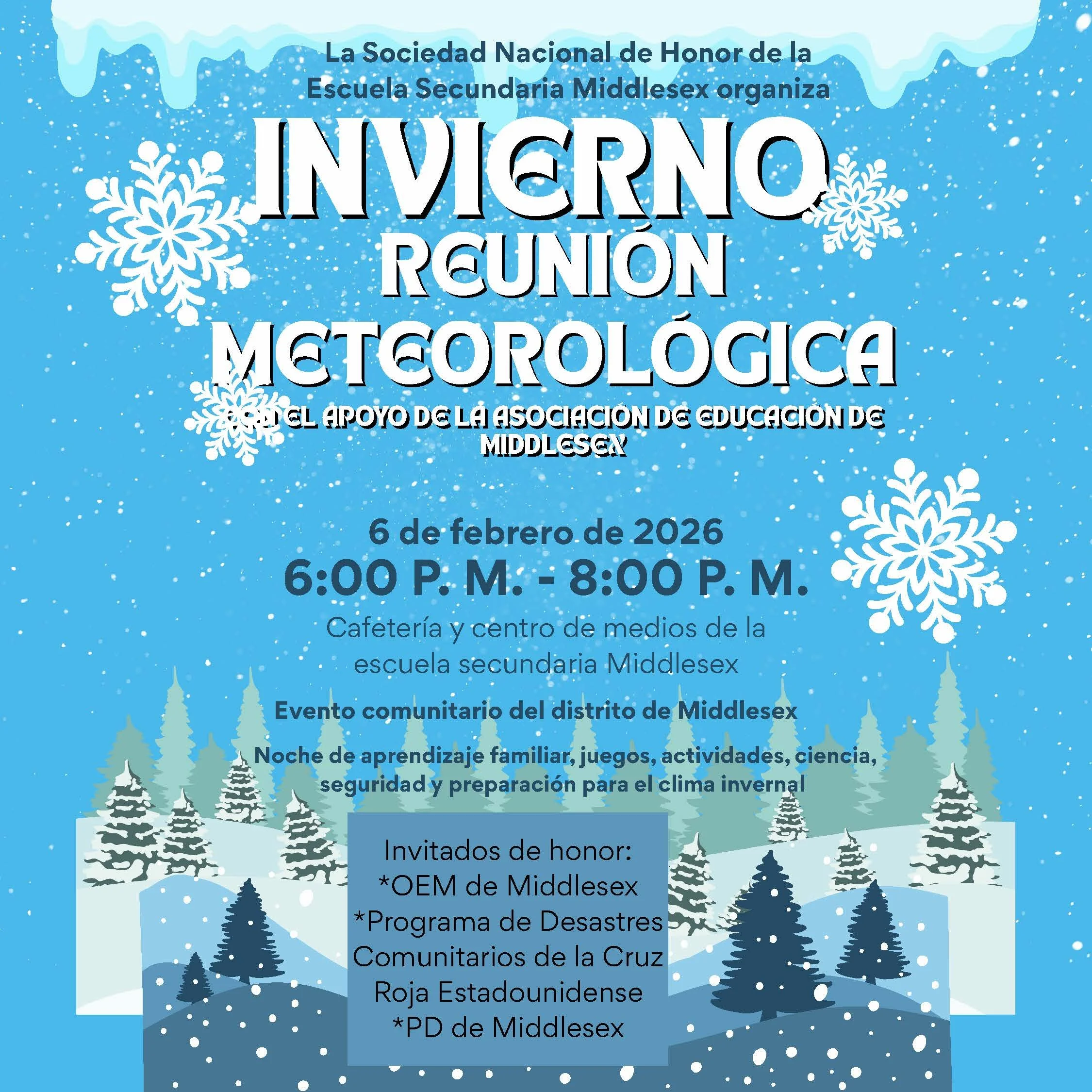 Looking forward to seeing our community members at the “Winter Weather Get Together” hosted by the Middlesex High School National Honor Society as it proudly hosts an opportunity to bring neighbors, friends, and families together.